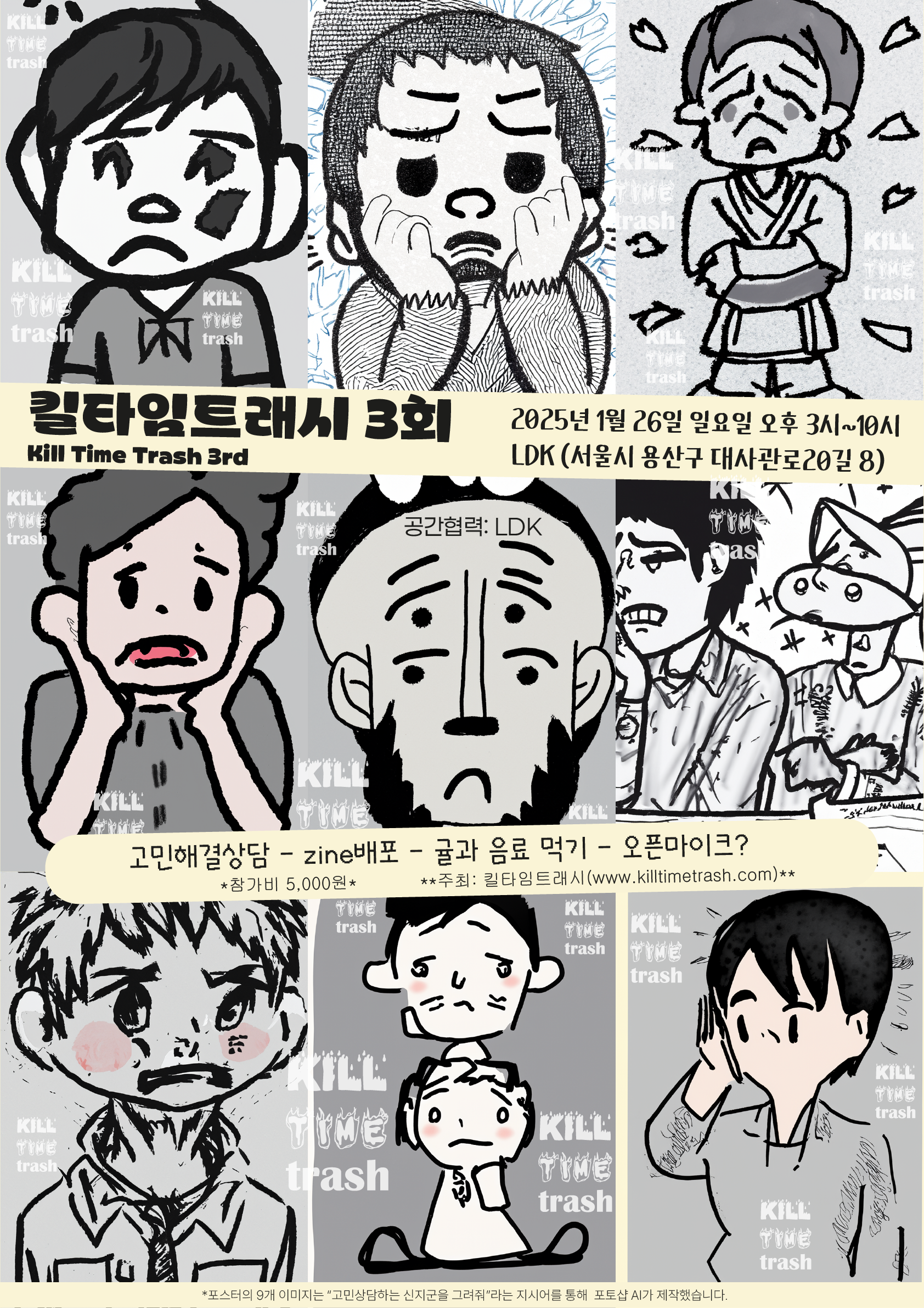 킬타임트래시 3회: 고민해결상담-zine 배포-귤과 음료 먹기-오픈마이크?